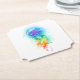 Stora, irrande, konstnärligt ritade, ljusa maneter med långa tentakler på vitt, målade över med flerfärgad vattenfärgad bakgrund. Regnbågsnäcka.