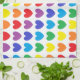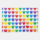 Abstrakt digitala rader med regnbågshjärtan mot en vit färgad. Färger inklusive rött, orange, gult, grönt, blues, lila.