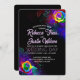 Romantisk och modern blommig bröllopsinbjudan med svarta och regnbågsrosor - levande färger som aldrig går ur stil.