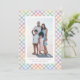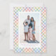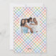 Skicka glada påskhälsningar med detta söta vårfotokort. Perfekt för vår-, familje- eller barnbilder, har detta vertikala påskkort en söt pastellregnbågsrandig ram, ett anpassningsbart meddelande och ett foto på framsidan. Baksidan är ett matchande pastellrutmönster med plats för ett andra foto eller så kan det lämnas tomt. Denna design finns även som nedladdningsbart påskkort. Hitta fler stilar och koordinerande påskprodukter i kollektionen från Lea Delaveris Design.