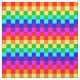 Kvadter av olika färg arrangerade i en regnbåge.