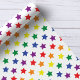 Förpacka dina presenter i en explosion av färg och kul med detta fantasifulla presentpapper med en levande regnbåge av stjärnor. Det lekfulla mönstret är perfekt för födelsedagar, baby shower eller någon annan fest som kräver en touch av magi. Tillverkat av högkvalitativt papper, kommer detta presentpapper att få dina presenter att verkligen lysa.