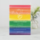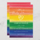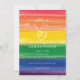 En inbjudan inspirerad av en regnbåge lagd tårta.