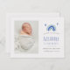 Nyfödd bebis blå regnbåge tillkännagivande för födelse, vacker och lycklig design! Pärvd med sött tackkort på baksidan för att tacka dina kära.