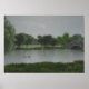 Den här poster en originalteckning av en grått- och regnig havsbotten som skapades i Vue d'Esprit av konstnären Jayne Wilson. En familj anka tar sig fram över sjö när regnfallen faller. En stenbro leder till en stuga på sjö:s yttersta sida.