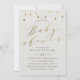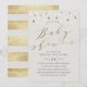 Grått taupe modern och elegant babyduschinbjudan som innehåller röntgendroppar och kalligrafi av faux guld. Baksida med guld rand.