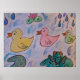 Ta en promenad ner till dammen på en regnig vår-dag, och du kommer att bli glad över att se söta små dunkar simma bland de färgstarka blåa regndropparna. Gröntens groda sitter på sin lilja och njuter av aprilduschen och den söt rosan öppnar sina petaler för att fånga fukten. Målade i levande pastellskuggor av gult, grönt och rosa kommer att lägga till en stänk av vår färg i världen.