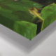 Regndroppar glider på en grå gult Engelska ro mitt i ett hav av glansig grönt löv. Denna digitala målning baseras på ett originalfoto av Jayne Wilson.