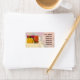 Regndroppar på Gultens Orange och Rosa ros Adressetikett