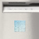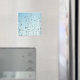 Design innehåller ett foto av regndroppar mot blå bakgrund.