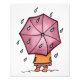 Från min ursprungliga fantasifulla akvarellmålning av en liten flicka iklädd regnrock och stövlar och hållande ett stort rött paraply stående i regnet.