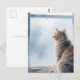 Regnigt Fönster Akvarell Tabby Katt Vykort