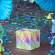 Vågigt diagonala, prismatiska regnbågsripplar i en ljus övertoning för att komplettera den klassiska regnbågen i färg.