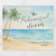 En elegant bröllop-design med vattenfärgsstrand och handflatan träd som du kan anpassa med dina detaljer.