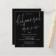 Ett budgetmässigt prist mindre än 4,5 x 5,6 tum alternativ. Finns i ett SEMI-GLOSS 110 lb-kort LAGRAR, vilket är standardalternativet (tjockare för inbjudningar), ELLER SATIN AVSLUTAR 80 lb PAPPER LAGRAR (perfekt för bilagor). Kuvert är ett extra som tillval och är något större än det storleka kortet. Den här moderna designen i klassiskt svartvitt har ett informellt skript med elegant för Rehearsal Dinner och resten av typografin som du lätt kan anpassa. Du kan också ändra färg för text och bakgrund på båda sidor om du vill med alternativet Anpassa ytterligare.