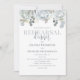 Den här eleganten är en enkel mall för bröllop-repetitionsmiddagar med dammig-blått elegant, blommigt bröllop grey löv, botaniska trädgårdsblå silver-grönt, trendig-snyggt-kalligrafi-penselmansskript, groommidmiddagsinbjudan, vår sommarvinter, ro-blommigt, sofistikerad, romantisk, enkel typografi, vattenfärg hand plockade söt. baby vacker spädbarn andetag