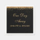 Elegant Black and Guld Glitter Rehearsal Dinner Napkins har en glatt gyllene glitter i svart bakgrunden, ett snyggt-skripttypografi "One Day Away" och namn-textmall.En perfekt design för kvällsrepetitionsmiddag i party eller för lyx bröllop tema.Klicka på personlighetsknappen om du vill anpassa den med din egen text.