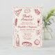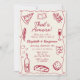 Den här formgivningen av stil-party är vismisk och handdragen och har ett klassiskt vin-rött färg, en lekfull vågigt ram och illustrationer av det italienskematda cuisineet. Den här designen är parad med elegant handskrivet typsnitt och är perfekt för att ge evenemanget ett litet vintage. Perfekt för repetitionsmiddagar, pars duschar eller möhippor, särskilt sådana med pizza eller pasta party.