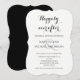 Den här elegantens inbjudan till repetitionsmiddag innehåller en parentesinbjudan med ord "Lyckligtvis alltid efter" i svart utmed överkanten på en vit bakgrund. En elegant & visas i mitten runt vilken namnen av bruden och trimmen visas. Nedan finns det gott om utrymme för dig att anpassa din information om repetitionsmiddagen. Baksidan av eleganten inbjudan har en samordnande svart sida. Copyright henishouseofpaper
