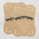 Matchande inbjudan till repetitionsmiddagen från Grooms föräldrar. Perfekt för Rustic, land fair stil utomhus bröllop. Om din dag är planerad att vara informell och av naturen, t.ex. i en park, i sjö eller i skogen, kommer denna antika lada stil att passa in högerna i. En papper väska med naturlig mjuk brun färg har en vintage solsprängningsdesign inslag med en färgbanderoll av kritskiva som säger: "Mr. Och Mrs." Handfärgade vilda blommor i rosa, lavender, lila orange och gult målas av Audrey Jeanne Roberts. De är parade med en uppsättning hjort antlers och scrollsar för att växla runt hörnet i hand plockade löv. På motsatt sida finns samma design med namn i krita på banderollen.