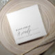 These black and white rehearsal dinner wedding napkins read “rehearsed & ready” in elegant calligraphy script. Designed with modern, simple styling and classic typography, they add a polished, sophisticated touch to your night before celebration.