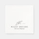 Rehearsal Dinner Napkins: Modern and elegant, these black and white rehearsal dinner napkins feature the simple handwritten phrase “the night before.” A minimalist design with the couple’s first names adds a refined touch. Also available with “the morning after” for next-day brunch celebrations. A chic, understated choice for modern weddings.