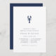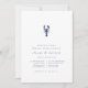 Få redo för den stora dagen med våra sommarhögtidliga inbjudningar till eleganten, med klassiskt nautiskt utseende med ett rent, minimalistiskt utseende och en lätt beröring av det marina livet. Utformningen innehåller en illustration av hummer överst. Eleganten blockeras och kursiv text i matchande marktygsblått. Innehåller utrymme för både ceremonin och middagsdetaljer. Perfekt för nautiska, sommar- eller vid repetitionsmiddagar, särskilt om hummer finns på menyn!