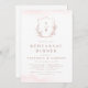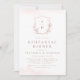faux ro guld och rosa minimalistisk repetitionsmiddag, med ditt monogrammade initialer inramat av elegantens vapensköld och hand illustrerade botaniska löv överst. Din händelseinformation visas nedan i modernt skript och klassiskt teckensnitt. Enkel och lyx. Visa alla matchande delar i samlingen