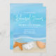Den här designen har en enkel vattenfärgsblå nautiska sommarsemedel/ Grooms Temainbjudan till kusten, för en kuststrand vid party firande, med ett sommarhavsområde till havs till havs till vatten, en vit roligt som firar att komma samman, ett kalligrafiskt skript för snyggt trendig, ett sött färgstarkt orange blåvitt, med en stjärnfisk och dollarssäsongsskalets snäckor, enkel minimal färgadjeskrift, en minimal liten pipa. Grafi, vinkara vattenens sandstrand, ett hav som kallas för part