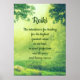 Reiki Dikt på gröntens skogsförgyllda bakgrund.
