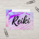 Denna design är chic & kvinnlig såväl som stark och manlig. Den är ett utmärkt primat för någon som söker det Reiki kortet, som är konstnärligt, abstrakt, och modernt såväl som nätt, härligt, chic och artsy för deras ledar- Reiki eller att brännmärka för den Reiki praktiker. Den svart Reiki typografitexten är på en konstnärlig abstrakt modern chic härlig fängslande unik artsy violet, turkosblått, en magenta och kall bakgrund för fuchsia en mycket.