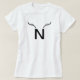 Förenkling, Snyggt julklapp Reindeer Antler anpassningsbar Initial kvinnas t-shirt med två silhuette hjort antlers i svart över en brev i modern minimalistisk typografi. Brev kan lätt vara personlig med ditt älskade första som perfektens festliga gåva.