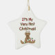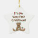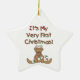 En berömvärd baby Första julprydnad med en nalle med renar och en candy cane och candy cane raderade text som lyder "Det är min allra första jul".