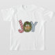 Julskjortor, mugg, kort, klistermärken, tote bags, magneter och andra helgdag och presentartiklar för julen som har en renhet och text med texten "Joy".