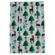 Renar, Julgranar och holly på en blå polka-punktbakgrund.