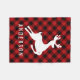 Filtar med kvadratisk helgdag har ett monogram av ditt efternamn (eller annan text) med en röd och svart proffspappererad buffalo-mönstrad ram och vit rensilhuett.
