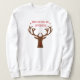 Brown reindeer silhouette with red nose and bold red greeting text, festive and rustic, ideal for holiday apparel and gift-ready prints on winter-themed items.