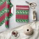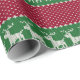 A playful faux-knit design featuring rows of white reindeer marching across festive red and green stripes. Classic Christmas sweater style for cozy cheer.
