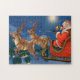 Den här konstruktionen har renar som flyger med Jultomten i ett lår över en stad. #Jul #helgdagar #festive #säsong #Tomt #rener #puzzle #Spel #leksaker