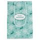 Den här söt Helgdag-presentsäcken har en tealblått och vit mönster av att tappa renar, snöflingor och konetti. Varje sida har en vit ovalsbanderoll med anpassningsbarna, så det finns inget behov av en märkre.