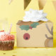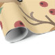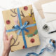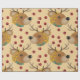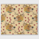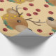 Hand-drawn bear dressed as a reindeer with holly and lights on festive beige paper and scattered berries.
