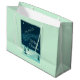 Ho-Ho-Ho God jul Stor presentväska med en vintage illustration av tomten i hans sligh som dras av hans renar. Små stjärnor sprinklar natten himlar. Snö täckte gräs träd på marken. Känn vintagens återtro.