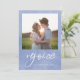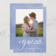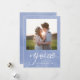 Kortet för enkel och elegant julfotboll har ett skript för vit penselglädje och blå vattenfärg tvättar bakgrunden med söt punkter. Foto av Callie Morgan på Unsplash