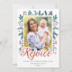 Skicka din julhälsning Önskemål med det här Helgdag-fotokortet som innehåller Holly Berries Lövs med ett häpnadsväckande Rejoice-skript för att markera ditt hälsning-meddelande.