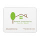 En reklammagnet för ett riktigt kontor i gods. En minimal arkitektonisk utformning av ett hus och grönt träd. Anpassa med din personliga information.