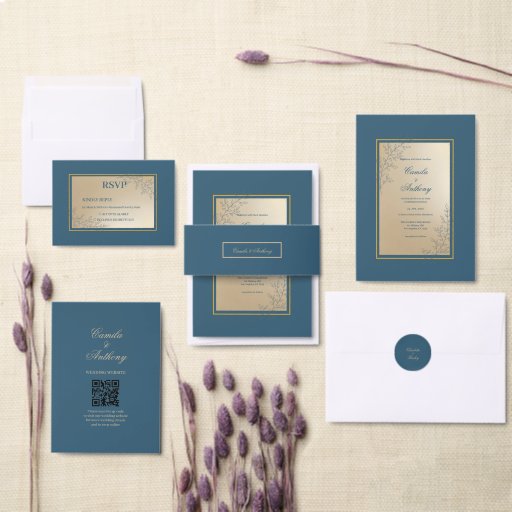 Navy Gold Rectangle Floral Boho WeddingDesignad av Dia Sha