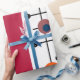Denna papper har ett modernt mönster i mitten av århundradet av en magenta rektangel med en vit rektangel vid grund med ett svart rutnät med reflektorer på den.