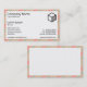En visitkortsmall med en rektangulär panel som lämnar färg eller struktur gräns runt kant. Alla huvuddetaljer är placerade på kortets framsida. Kortets baksida har en upprepning av frontpanelens utformning som är tom. Detta kan behållas som ett användbart anteckningsområde, tas bort eller användas som utrymme för att lägga till ytterligare information till det anpassade kortet. Dekorationen för kubens logotyp på framsidan kan också behållas som en dekoration för snyggtens generiska logotyp, ersättas med logotypen eller dekorationen eller rensas. Lämpligt för många typer av företag. Det finns också ett växande urval av andra varianter av den här mallen.