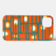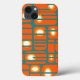 Det här telefonfallet har en modernt utformning av orange-rektanglar med vita cirklar och guld i dem och teal-vågrät linjer som korsar dem på en fält av tealen.