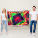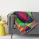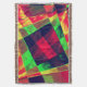Oregelbundna fyrkanter och rektanglar, vissa justerade men lutade. I rött, svart, grönt, gult och orange med prickar och ett starkt linjer som skiljer "objekten" åt.